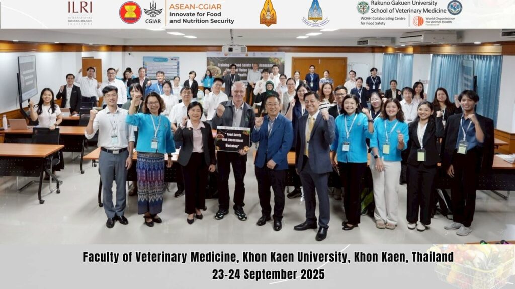 Food safety is a priority area of ASEAN, which ensures the safety of food products from production to consumption for consumers. Under the ASEAN CGIAR Innovate for Food and Nutrition Security program, the International Livestock Research Institute (ILRI) in collaboration with the Faculty of Veterinary Medicine, Khon Kaen University (KKU), Thailand and WOAH Collaborating Centre for Food Safety, Rakuno Gakuen University (RGU), Japan organized a training on “Food safety risk assessment for informal value chains under a One Health perspective” on 23rd and 24th September, 2025 at the KKU.